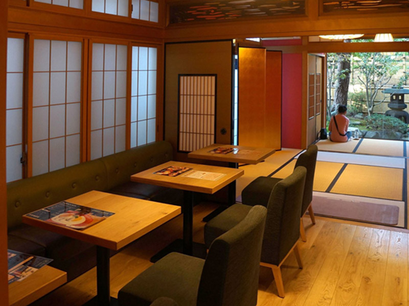 築50年の民家を改装した店内は、手描きの加賀友禅をあしらった壁や中庭を眺められる畳敷きの空間を設けレトロモダンな雰囲気にまとめ、カウンター4席、テーブル16席で、和室は25人までの利用が可能で、外国人など観光客の利用も多いらしい。