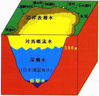 (3)300メートル以深には低温の「日本海固有水」が大量に存在し、